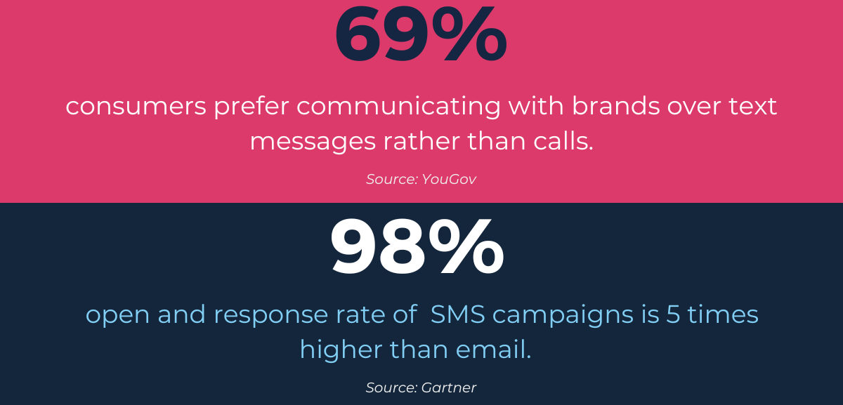 This is reflected in recent studies that show consumers prefer communicating with brands over messages rather than calls, and messaging campaigns perform 5 times better than emails.